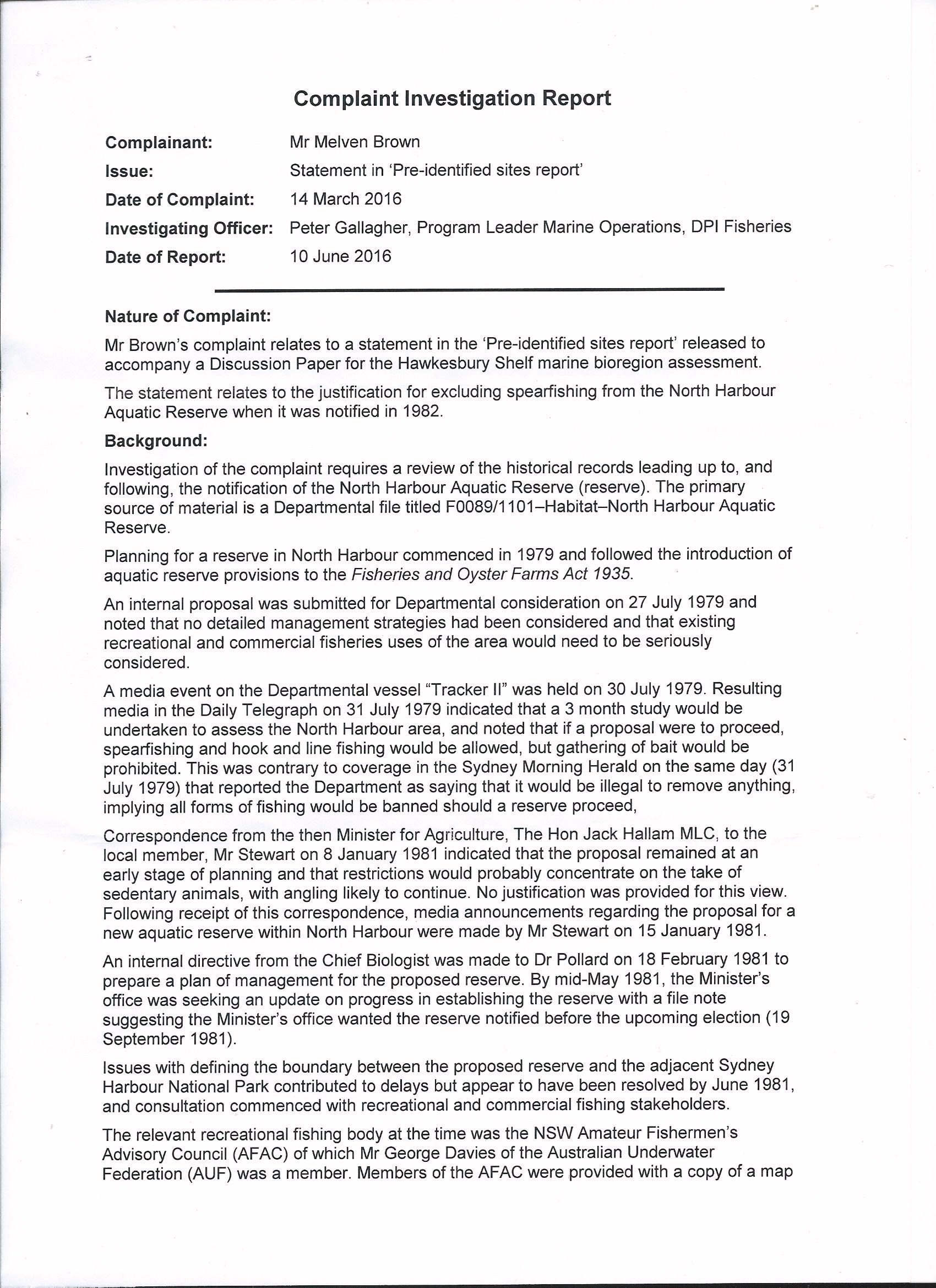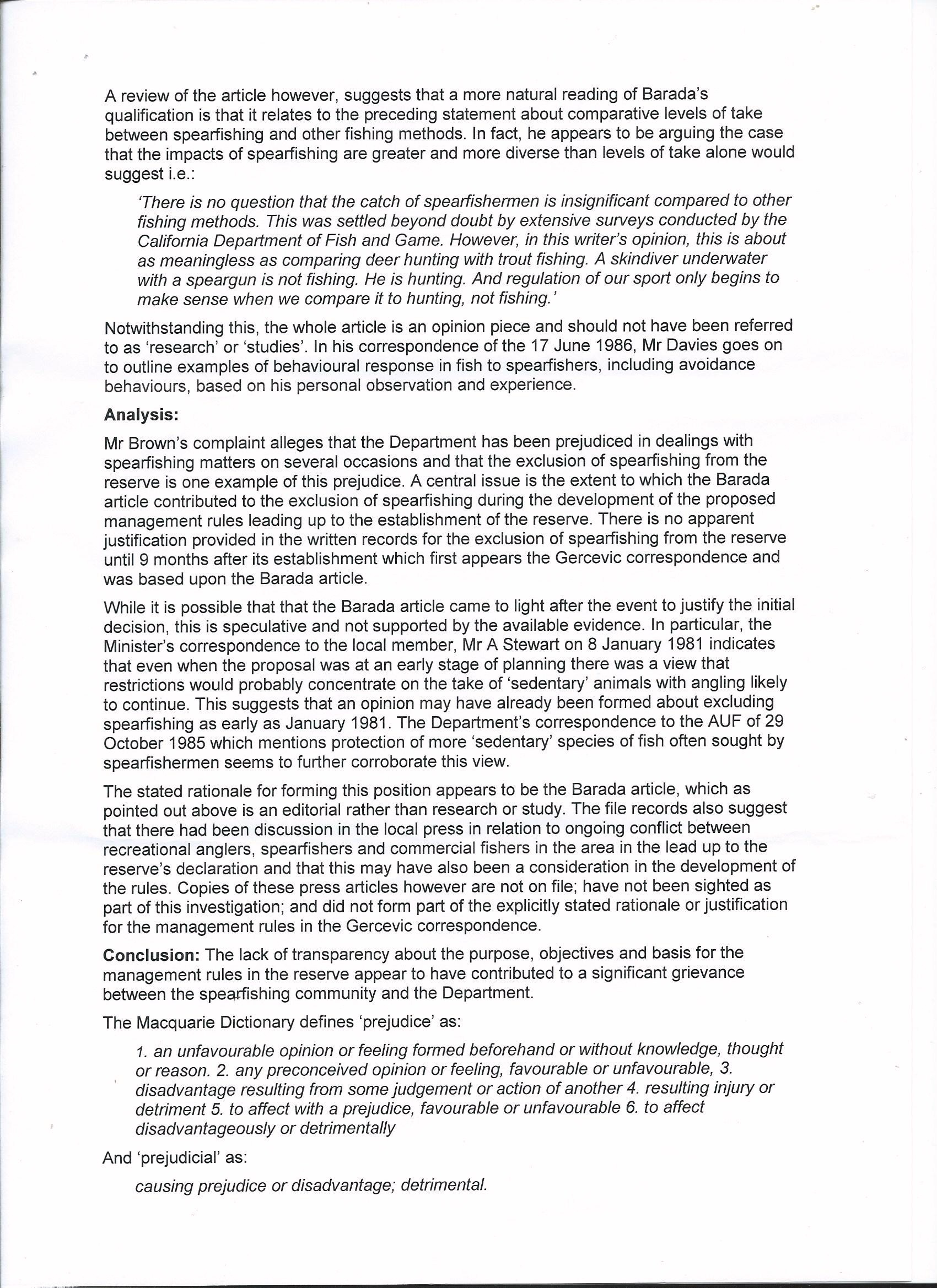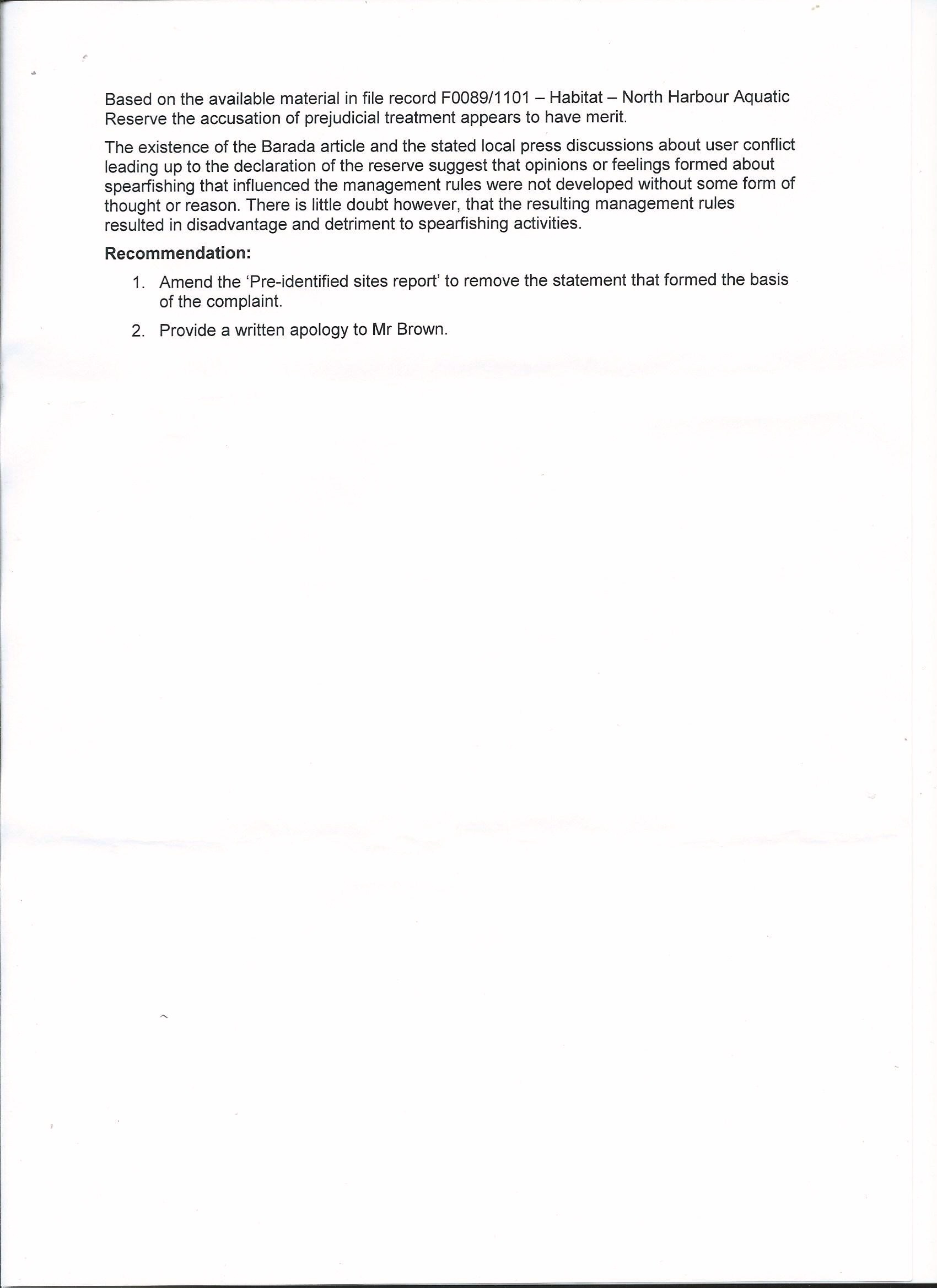 Following an official complaint made to the Department of Primary Industries about a false statement made in the Hawkesbury Shelf Bioregion Assessment concerning spearfishing, Mel Brown has gotten an apology on behalf of spearfishing.